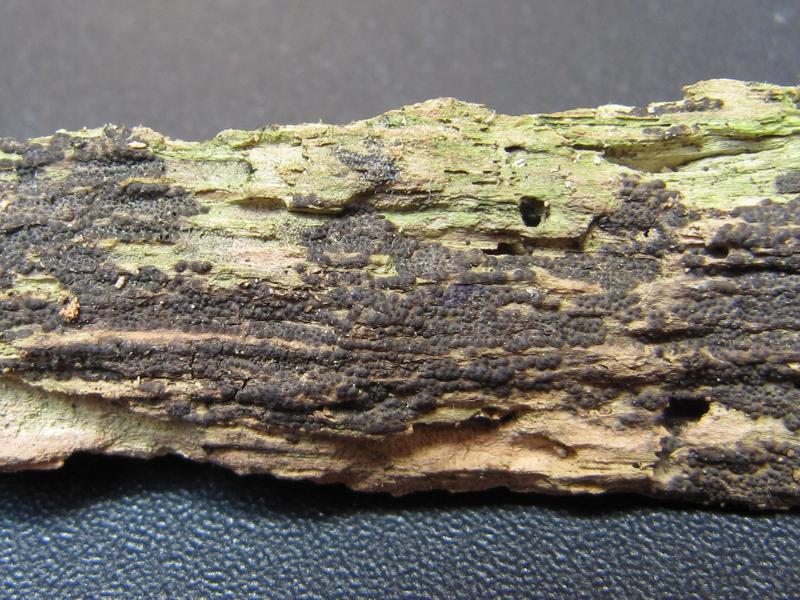 Hallo, ich habe einen Pyrenomyceten gefunden, der an eine Eutypa erinnert. Allerdings finden sich in dieser Gattung Vertreter mit hyalinen Sporen, die in Masse eher gelblich erscheinen. In diesem Fall sind sie aber bräunlich und in Masse braun. Außerdem sind sie zu breit.