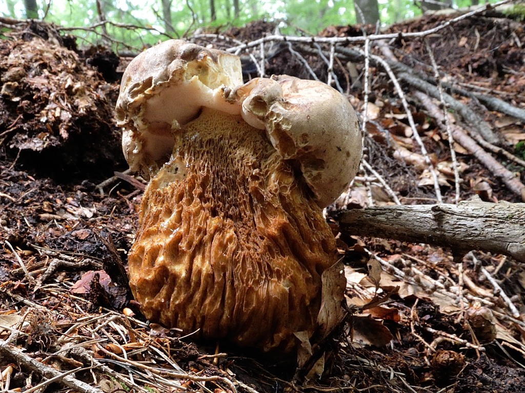 Auf den ersten Blick für mich ein Halli Galli, Tylopilus felleus. Wenn ich falsch liegen sollte, auch nicht schlimm. Der Stiel erinnert mich aber an einen Erstfund 2011(By-Rhön), das war damals ein wahnsinniges Gerät. hier ein Bild davon... Grüsse aus der Rhön
