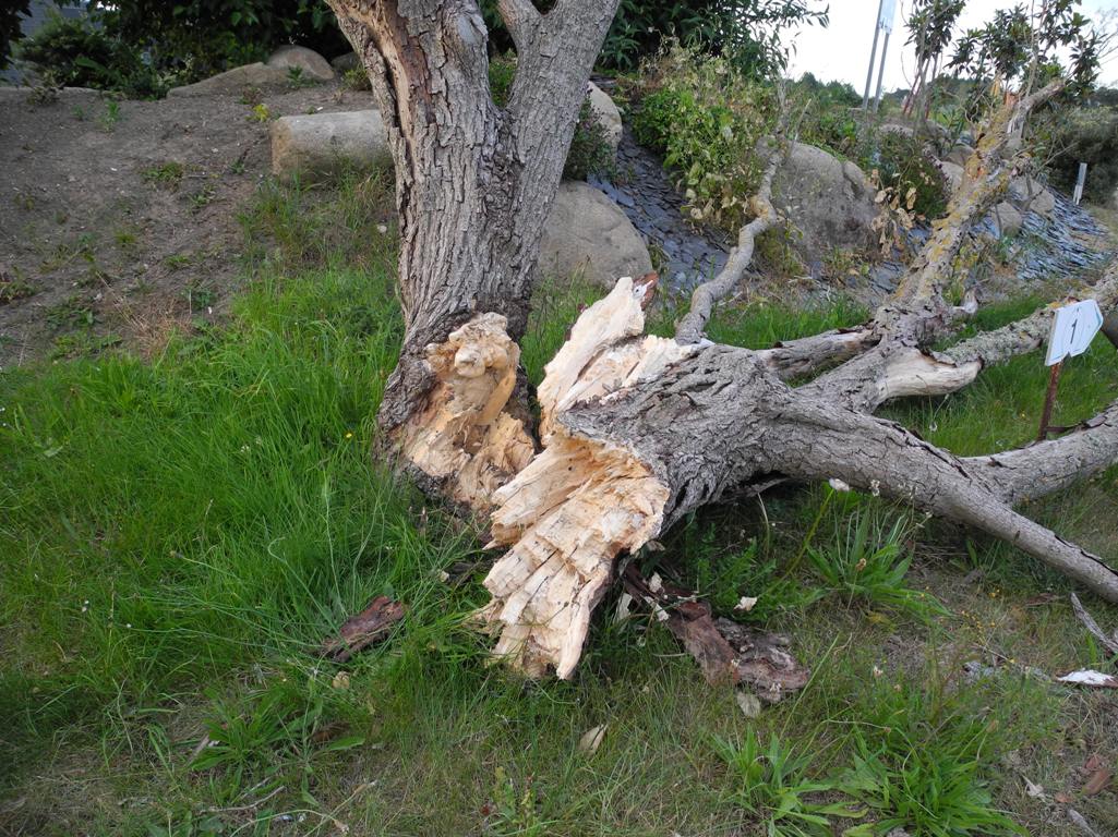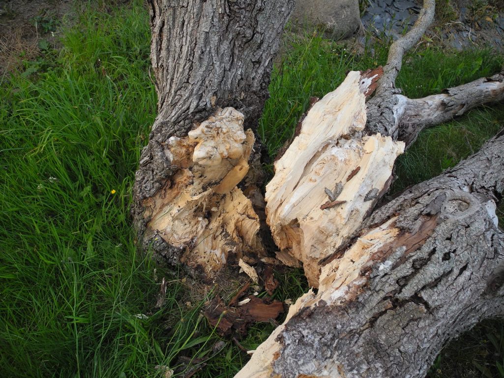 In der Nähe unseres gemieteten Häuschens stand eine abgestorbene Korkenzieher-Weide. Nach ein paar Tagen war sie zur Hälfte auseinadergebrochen.