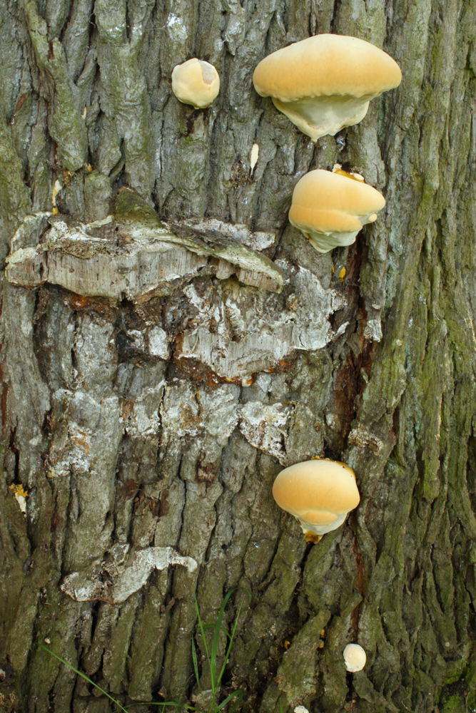 Im Klever Forstgarten fanden wir diese Porlinge, die ebenfalls an einer Eiche wuchsen. Ich denke an Ganoderma resinaceum - könnte das hinkommen?