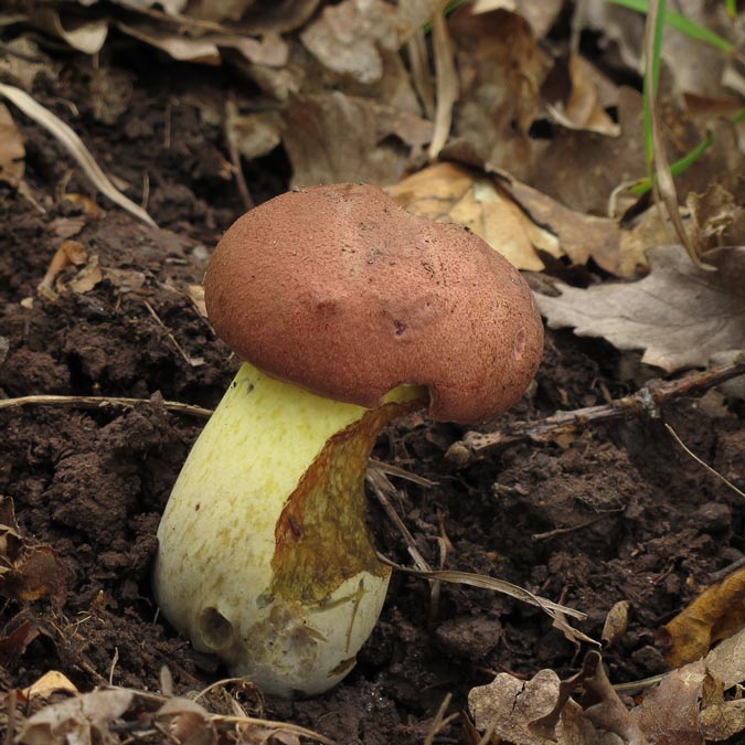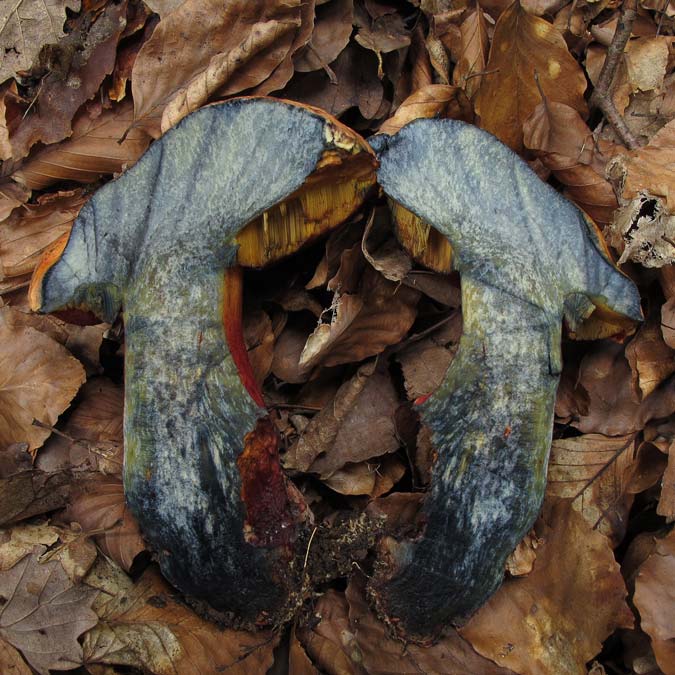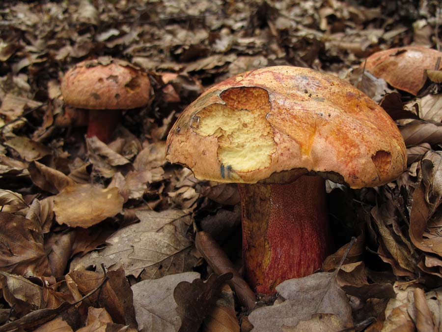 Blauender Königsröhrling Boletus fuscoroseus mit neuer Position auf dem Feld. An bekannter Position waren nach 2012