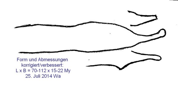 So habe ich nochmals Sporen gemessen und festgestellt, dass diese ein bisschen grösser, wohl auch etwas reifer oder weniger trocken, waren als die erste Serie. Hier die Abmessungen:
