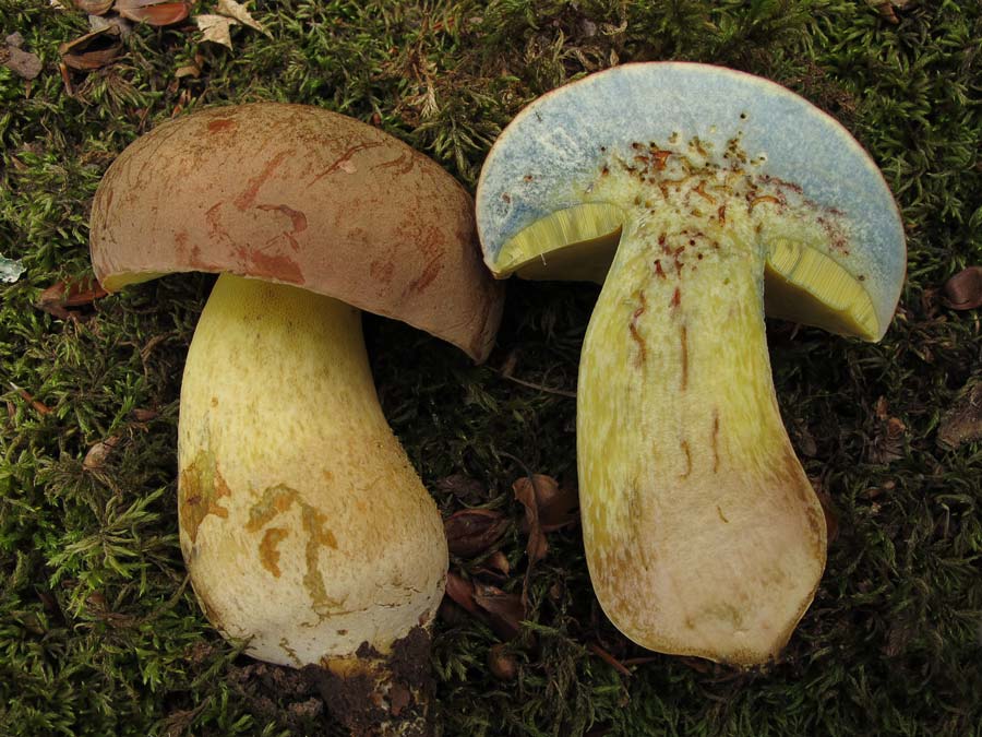 Hallo Rika, Was den Dickröhrling betrifft, so hatte ich gehofft, es würde noch jemand dazu eine weitere Einschätzung abgeben – leider Fehlanzeige. nicht so ungeduldig Rika. ;-) Den Silberröhrling kenne ich noch nicht von daher kann ich zu dem nichts groß sagen. Vom Blauenden König hab ich Dir mal ein Schnittbild zum vergleichen angehängt. Im alter bleicht der Hut wirklich gerne aus und reist auch felderig auf. Am Hutrand hat er dann aber immer noch diesen rötlich / rosanen Schimmer. Zumindest an meinem Standort. Bei Deinem Foto hat man auch fast den Eindruck, daß er am Rand etwas rosa schimmert, aber so schwach hab ich das noch nicht erlebt und dazu ist er noch nicht mal felderig aufgerissen. Das helle beige - braun ist auch irgendwie anders. Soll bedeuten, daß ich Deinen Fund im Feld nicht als B. fuscoroseus erkannt hätte. Gruß Joschi