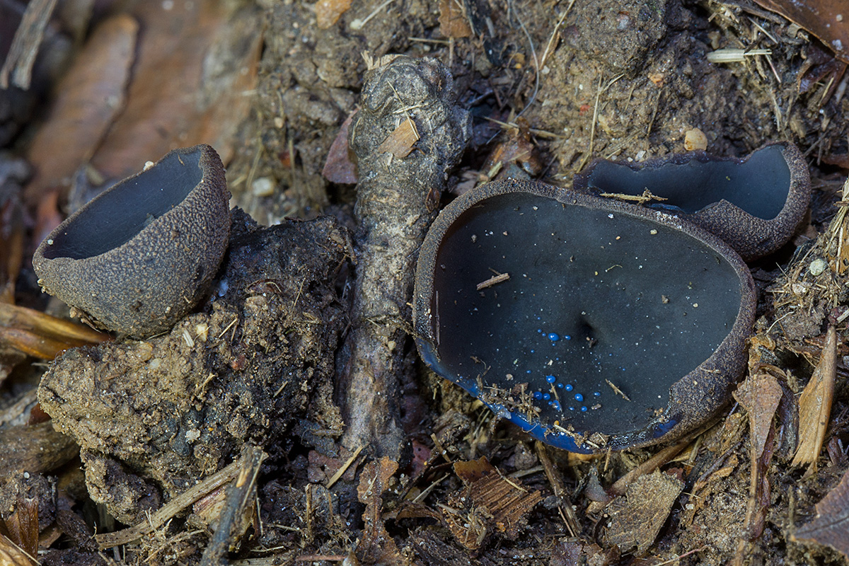 Endlich mal Geld im Wald… ;) Die Peziza daneben war mir aber mehr wert als tausende Cent, da nach 7 Jahren letztlich doch noch drüber gestolpert. Noch unsicher aber hoffnungsvoll hatte ich mich wie ein kleines Kind auf die auf den Schnitt zu folgende blaue Milch gefreut: