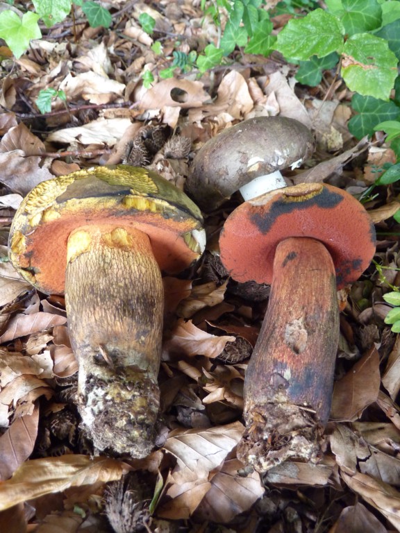 Hallo, nach Wochen voller Frust endlich auch hier in Oberfranken Erfolgserlebnisse. Im Buchenwald mit eingestreuten Kiefern auf Kalk wuchsen mehr als hundert Boletus reticulatus, Mengen von Russula olivacea,einige Pfifferlinge und die abgebildeten Hexis. Kann man anhand der sichtbaren makroskopischen Merkmale auf Boletus mendax schließen bei dem rötlicheren Pilz? Was ist der derzeitige Stand überhaupt? Das alles ist doch etwas frustierend. Herzliche Grüße Jochem