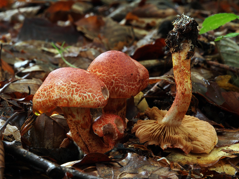 Hallo zusammen, dieser hier abgebildete Pilz steht aktuell sehr zahlreich im Rotbuchenwald mit eingestreuten Fichten. Mit den mir hier zur Verfügung stehenden Möglichkeiten habe ich ihn als Cortinarius bolaris, also Rotschuppiger Rauhkopf, identifiziert.
