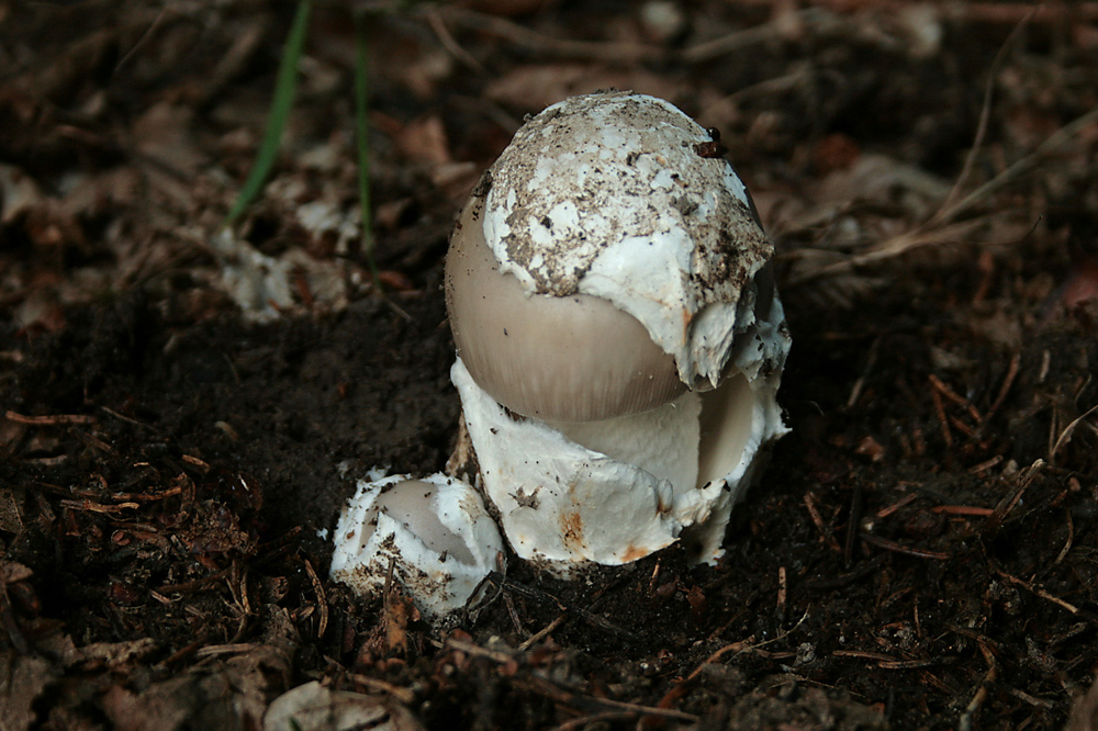 Hallo miteinander! Bekanntlich sind wir hier auf dem Hochsträß immer ein bisschen später dran – die Steini-Schwemme ist seit einer Woche vorbei, jetzt ist Amanita- und Lepiota-Zeit. Einiges davon haben Andere und auch ich ja schon gezeigt. Hier ein Foto von einem ganz jungen Scheidenstreifling, wobei ich nicht weiß, was das letztendlich geben wird: Grauer Scheidenstreifling (Amanita vaginata) oder Düsterer Scheidenstreifling (Amanita fuscoolivacea) oder Zweifarbiger (Amanita battarrae) oder der Dickscheidige oder der Silbergraue oder ... ? Sah jedenfalls toll aus – mir kam der Doors Titel Break on through ... to the other side in den Sinn ;-) Welcher Streifling hat doch diese innen graubraune Volva? Vorschläge zur Namensgebung herzlich willkommen! Viele Grüße – Rika