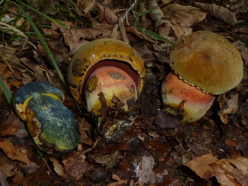 habe ich hier einen flockenstieligen Hexenröhrling gefunden? Die sehr schnelle Verfärbung nach tintenblau und dann bis nach fast schwarz hat mir zu denken gegeben.