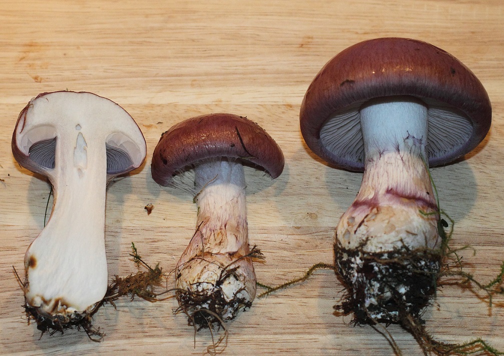 Mit Abstand der schönste Pilz des Tages (Wobei die Klapperschwämme auch toll waren. :) Schneeweißer Stil mit violetter Färbung am Stil (Velumreste?), schleimiger, violetter Hut, helle Lamellen. An der Schnittstelle riecht er... ich weiß nur nicht nach was. Vielleicht ein wenig wie feuchtes, muffiges Heu? :) Fleisch im Schnitt nicht verfärbend.