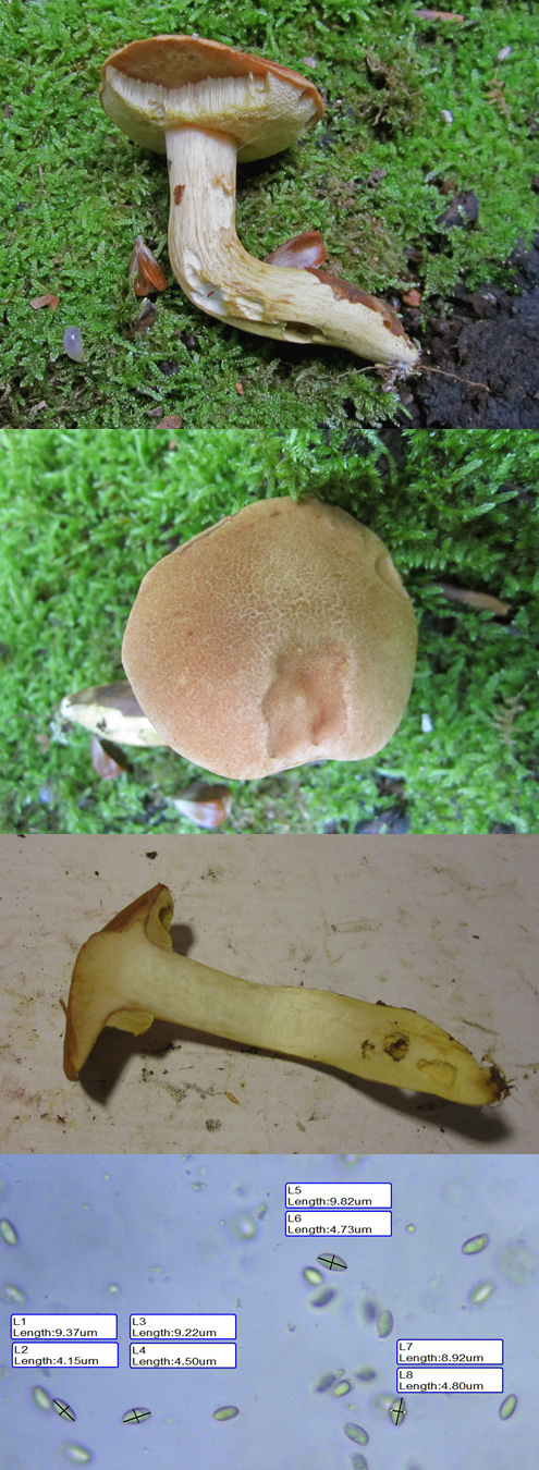 Hallo zusammen, hier ein paar Bilder eines Fundes, der mir nach Xerocomus leonis aussieht. Aber stimmt das auch? Gemäß Jürgen Schreiners Beschreibung (1998, MNMS Aschaffenburg 17) passt fast alles - nur war das Basismycel weiß (nicht gelb) und die Sporen scheinen einen Tick zu klein zu sein bzw. sehr am unteren Spektrum zu liegen. Sehr auffallend für mich: Der Geruch. Stark würzig-pilzig-fruchtig und höchst angenehm. In GroPi BaWü steht X. leonis als Synonym zu X. moravicus. Dieser soll "unspezifisch" riechen und die Röhren sollen auf Druck blauen. Bei diesem Exemplar hat allerdings gar nichts geblaut. Fundort: Trockener wärmebegünstigter Kalkbuchenwald mit Eichen in der Nähe von Freiburg. Gibt's Meinungen? VG,