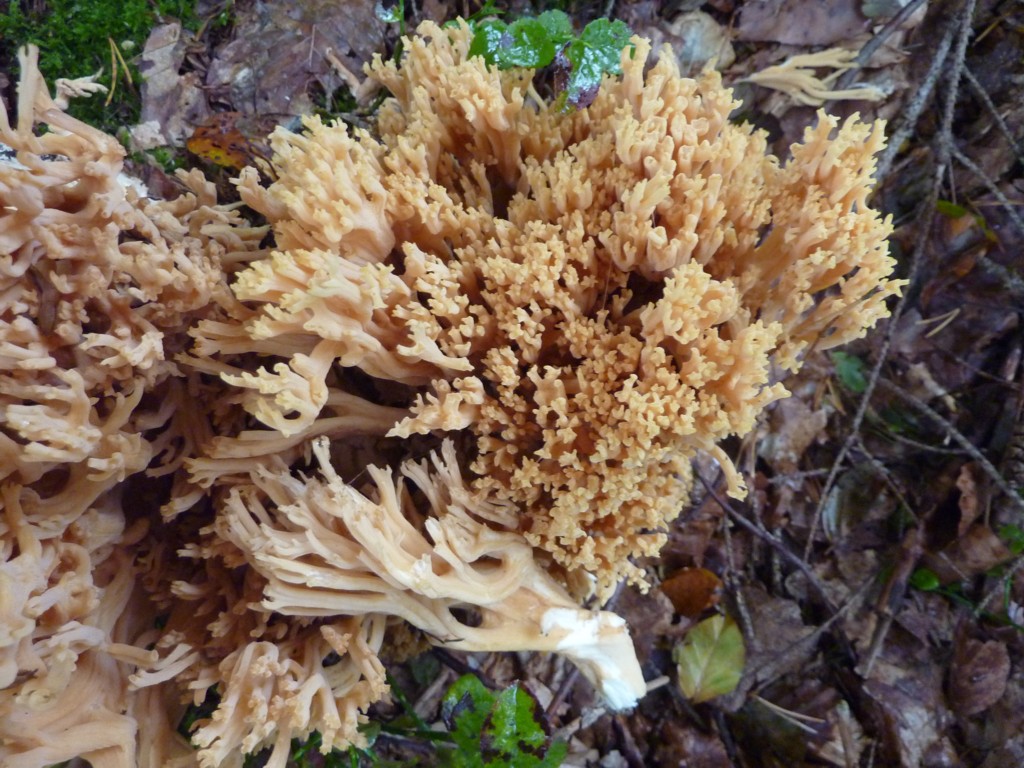 Hallo, bei dieser gelben Koralle mit etwas lachsrotfarbener Färbung stehen die Äste weiter auseinander und sind weniger stark verzweigt als bei aurea. Sie wächst im Mischwald auf saurem Boden. Hier komme ich nach der Literatur, leider nur makroskopisch, auf Ramaria flavescens, die Gelbliche Koralle. H G. Jochem