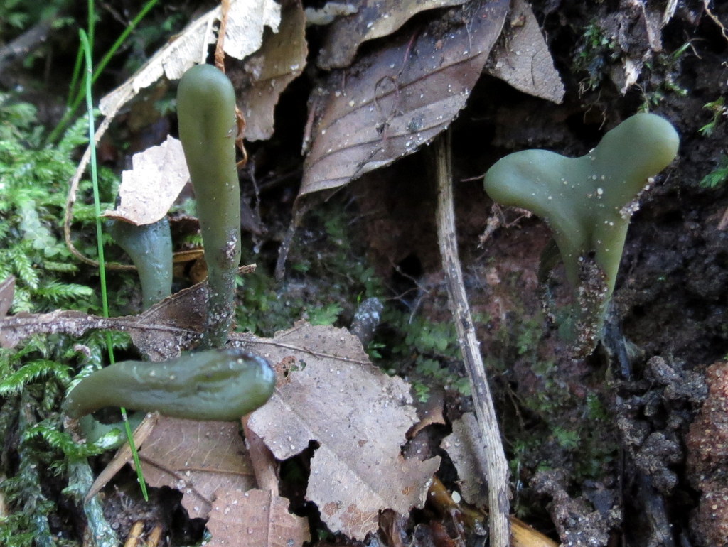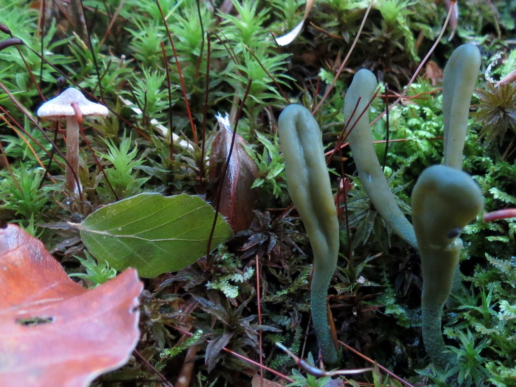 Hallo Forum Auf Grund eines Aufrufs beim BGM zur Kartierung von Grünen Erdzungen bin ich verwirrt und wage jetzt hier keine Bestimmung: Microglossum viride oder die neue Art Microglossum griseoviride ? Außer den genannten Unterschiede beim BGM habe ich dazu keine weiteren Infos gefunden. Fundort: An einer Wegböschung von etwa 10 m Länge in einem engen und feuchten Tal im Pfälzerwald. Mischwald mit Kiefern, Fichten und in der Mehrzahl dicke Buchen. Letztere auch direkt oberhalb von der Fundstelle.