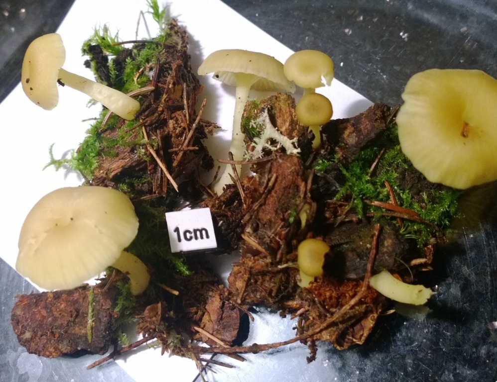 Wunderbar Sepp! Besser kann man das Dilemma in dem sich dieses arme Pilzchen befindet wohl nicht beschreiben. Im Gröger ist es als "Chrysomphalina grossula" drin, aber da ist der deutsche Name schon am passendsten: Grüngelber Nabeling - ein sehr hübsches Pilzchen! Gruss ins Aaretal, Mischi Ps.übrigens stimmen die Mik-Merkmale gut (Sporen und fehlende Schnallen)