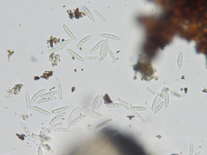 Konidien: 17-24 x 4-4,5 µm, hyalin, leicht gekrümmt, (3) 4-5 (10)-fach septiert