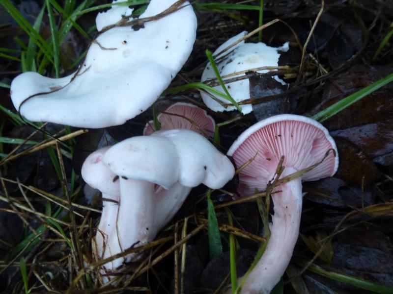 Dem hier ist regelmäßig anscheinend so kalt, dass seine Lamellen schön lachsrosa sind - nein im ernst: Leucopaxillus rhodoleucus. Vor Jahren noch eine Sensation. Inzwischen fast ein Massenpilz in der kalten Jahreszeit. Kommt bei mir in der zweiten Oktoberhälfte bis Anfang Januar in frostfreien Perioden.