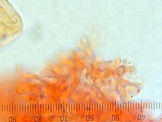 Dank an alle, die sich an der Diskussion beteiligt haben! Habe nochmal nachmikroskopiert und tatsächlich nach einigen Fehlschlägen die gesuchten Auswüchse der HDS gefunden. Durch die Dreidimensionalität (und ohne Stacking) lässte die Qualität des Bildes zu wünschen übrig, aber man kann's erkennen. Die Fotos haben jetzt den Namen Mycena olivaceomarginata. Gruß Helmut