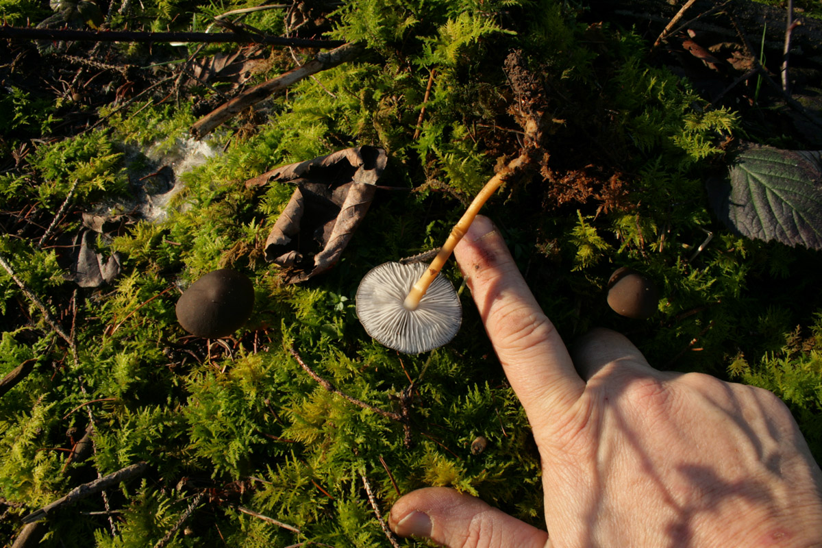 Der Kompositeur ist die Natur, ich nur die Beobachterin ... wobei ich schon sehr genau hinschauen musste, um die weißen Pilzchen zwischen den Schneeflecken überhaupt zu erkennen. Meine Ausrüstung hält sich in Grenzen: ein Müllsack zum Draufliegen, die Canon EOS 400D mit Standardobjektiv (18 - 55) und ein kleines Stativ.
