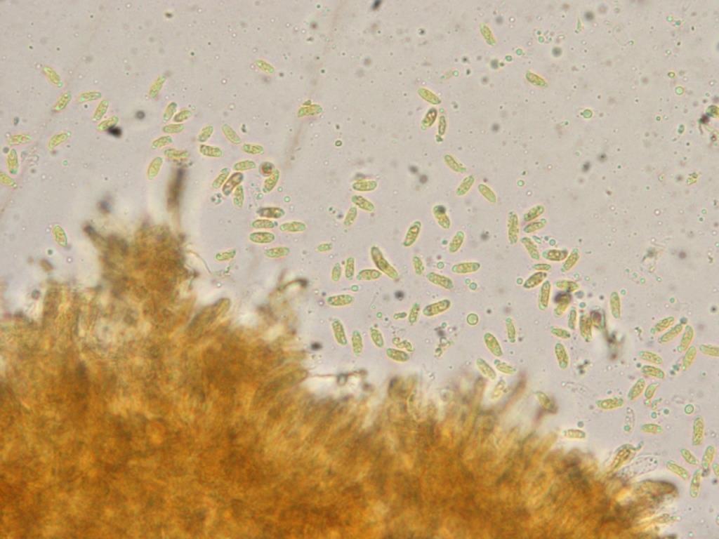 Der Buchenknäueling fällt wohl aufgrund der Sporenmasse aus dem Rennen (4-5 x 7-10). Ausserdem hat dieser meist noch einen violetten Stich und wächst auch weniger im Winter. Hinweis: das Präparat wurde in Melzer gemacht, deswegen die gelben Sporen... Gruss, Mischi PS. Werde dann noch die Dicke der Huthaut prüfen, die beim Austernseitling fast doppelt so dick sein soll als beim Lungenseitling, aber wie und wo misst man die am Rand oder in der Mitte des Hutes?