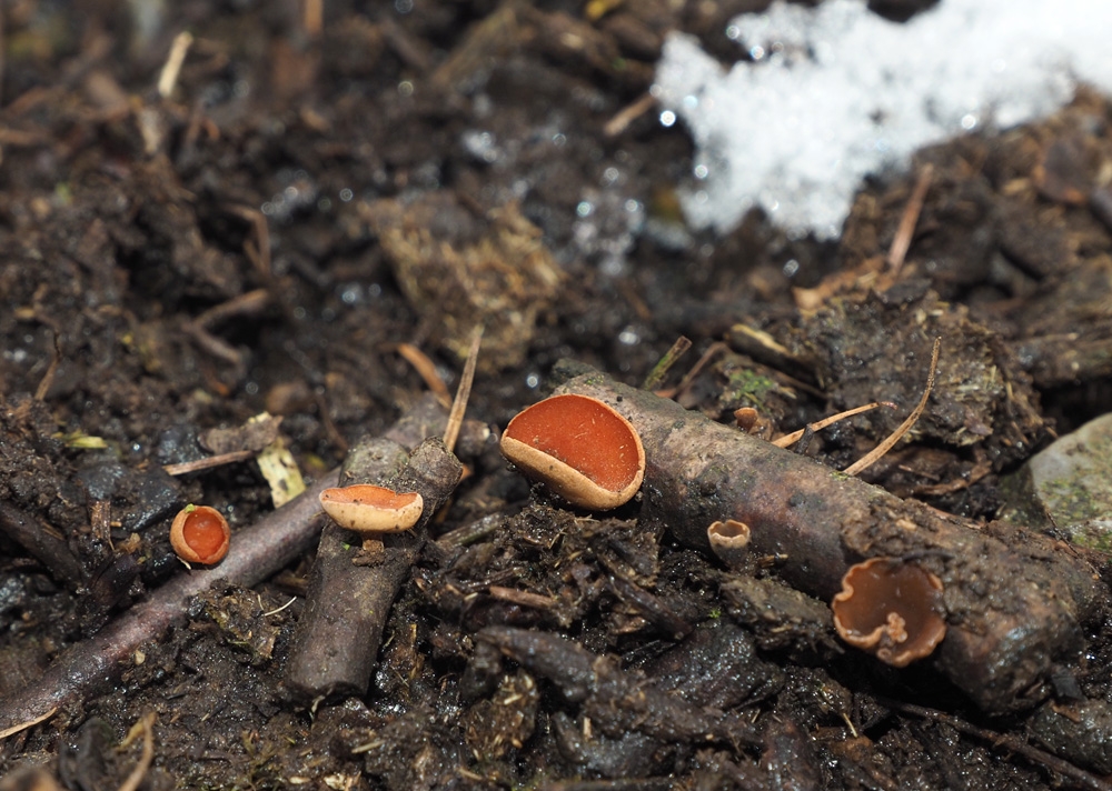 Ciboria bolaris ist zur Zeit unter Hainbuchen auf Ästchen über Kalkböden zu finden. Wegen der schönen orangebraunen Farbe leicht anzusprechen.