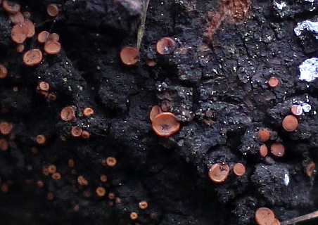 Hallo, gestern sind mir diese kleinen Becherchen begegnet. Sie wuchsen auf verletzten Stellen einer älteren Lärche. Meine Nachforschungen haben mich zu den Harzbecherchen geführt. Kann mir einer von euch anhand des Fotos (reale Größe der Becherchen: ca. 1-2mm) einen genaueren Tipp geben? Lässt sich da ohne Mikroskop überhaupt etwas sagen?