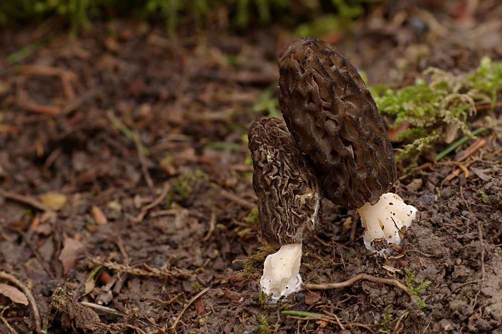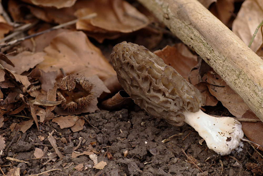 Die Morcheln hielten sich noch ein bisschen zurück, aber einige waren schon etwas voreilig und wurden prompt von uns entdeckt, so z.B. in einem Waldstück mit überwiegend Buchen, und nur einigen wenigen Eschen: