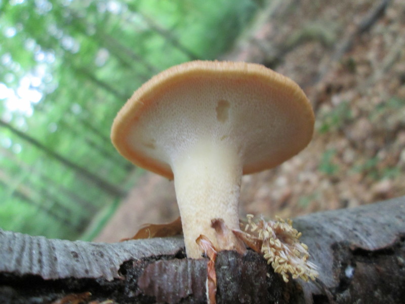 Hallo, Ich habe gestern mal kurz in die Heide geschaut. Da sieht es mit Pilzen noch eher mau aus. Diesen Porling auf Totholz habe ich mehrfach gefunden. Der hier abgebildete wuchs auf einem Buchenast. Ich tippe auf den Sklerotien-Stielporling (Polyporus tuberaster).