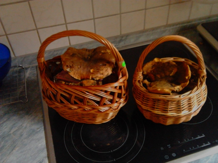Bevor wir den Herd eingeschaltet haben, putzten wir die Pilze,