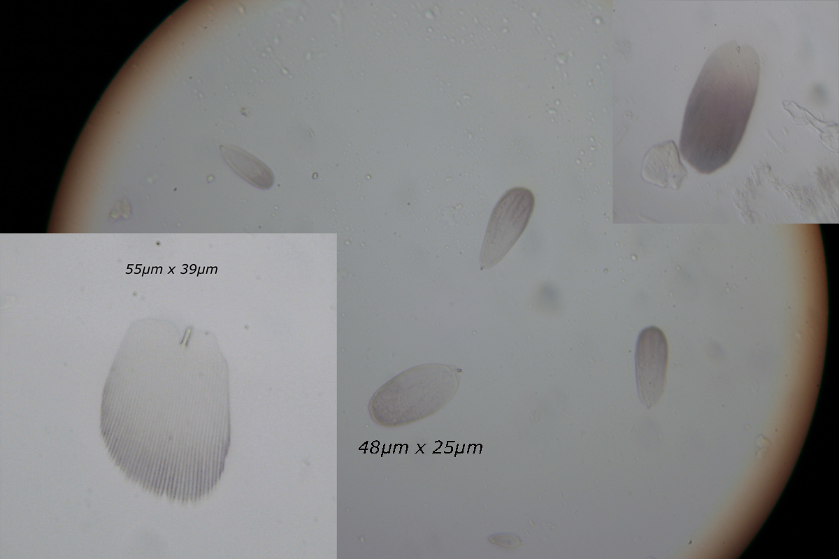 Hallo miteinander! Immer wieder finde ich unterm Mikro diese seltsamen Dinger, vorzugsweise im Zusammenhang mit Ascomyceten. Sie scheinen "unten" leicht gewölbt zu sein, haben "oben" einen kurzen "Stiel", die sichtbare Oberfläche zeigt eine streifige Struktur aus exakt parallelen Linien. Hat jemand von Euch eine Ahnung, was das für Dinger sein könnten? Viele Grüße – Rika