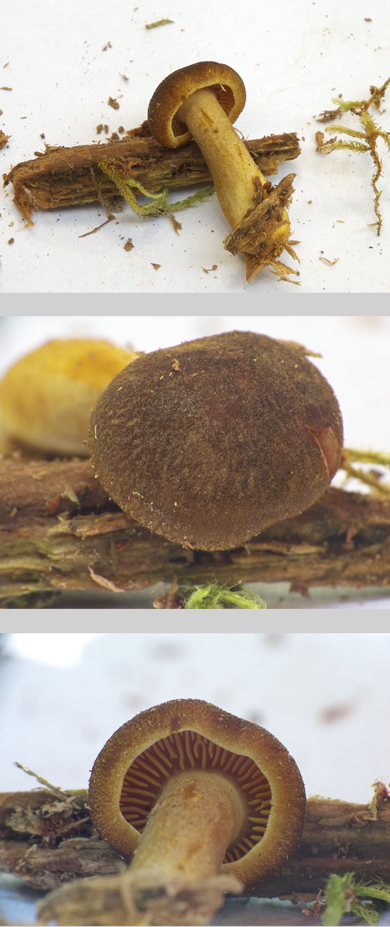 Hallo ihr Lieben, es soll ja Menschen geben, die sogar bei tropischen Temperaturen von 35°C noch im Wald rumkriechen und nach Pilzen suchen. Wie schön, wenn man das nicht alleine tun muss, sondern sich insgesamt 8 Menschen schwitzend durch brusthohe Brennesseln kämpfen oder am Weiherufer über Pfifferlinge stolpern. Natürlich findet sich so im größeren Kreis auch einiges mehr an Pilzarten, unter anderem auch das nette abgebildet Pilzchen, das noch so jung ist, dass es nicht absporen wollte. Es wächst auf Holz, hat keulenförmige, große (bis ca. 40 µm)und teils septierte Cheilozystiden, der Hutdurchmesser beträgt ca. 1,5 cm. Es hat mich sehr an der Nase herumgeführt, bis mir heute nachmittag plötzlich klar wurde, was es sein könnte. Keine Angst, es ist nichts Schwieriges oder Exotisches, mein Brett vorm Kopf war diesmal nur sehr gut festgenagelt ;-). Ich wüsste aber doch zu gerne, ob Ihr auch zum gleichen Schluss kommt. Also welcher Pilz könnte das sein? herzlichen Dank und liebe Grüße Birgit