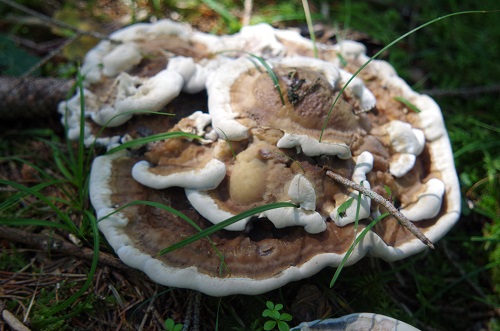 Könnte dieser Hydnellum floriforme sein? Größe 10-15 cm. Er riecht angenehm bittermandelartig, blumig. Auf Druck blauend. Gezont und zum Basis hin schwarzblauen. Siehe folgendes Schnittbild.