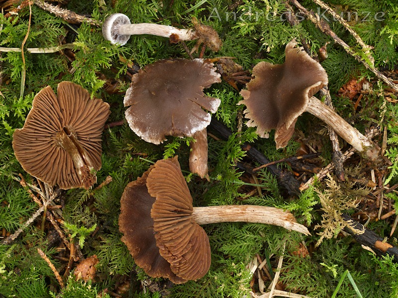 Hallo Pilzfreunde, in einem feuchten, bodensauren Fichtenforst habe ich einen braunen Vertreter der Untergatttung Telamonia gefunden und aufgrund des Pelargoniengeruchs als Cortinarius flexipes eingesackt. Zuhause beschlichen mich dann Zweifel, weil sowohl die typische spitzige Hutmitte als auch die weißen Velumgürtel am Stiel fehlten. Und gerade als ich mich auf C. stemmatus einschießen wollte, habe ich gelesen, dass die Art wohl geruchlos ist. Also doch C. flexipes, nur ältere Exemplare? Bin für jeden Tipp dankbar. Gruß, Andreas