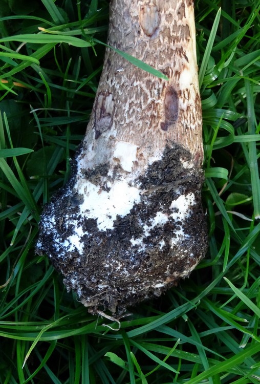 Fleisch im Hut weiss und rötliche Verletzungen am Stiel zurückbleibend.