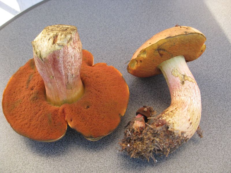 Letzten Sonntag gefunden. Zunächst dachte ich an den flockenstieligen Hexenröhrling, aber irgendwie passte die Hutfarbe nicht. Auch blaute er nicht wie gewohnt, sondern nur schwach. Danach blass Schwarz, ausblassend. Röhrenboden nicht orange. Hut hellbraun mit orangen Anteilen. Schaut euch die Bilder an. Boden sauer, Hainbuche, Birke und Eiche. Kann man damit was anfangen? Helft mir bitte weiter.