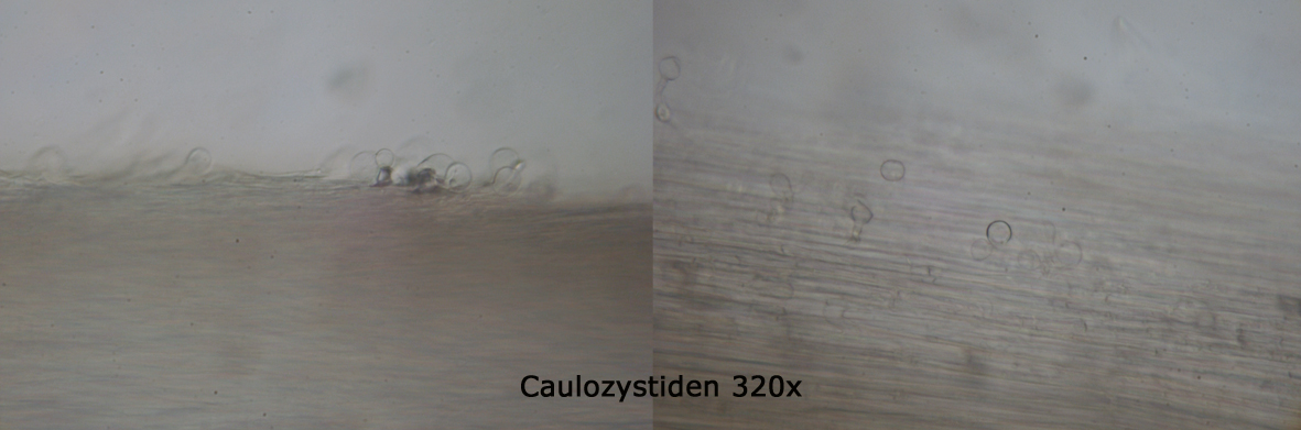 : lg dirk ------------------------------- Hallo Dirk, bitte entschuldige, dass meine Antwort so lange gedauert hat. Aber ich bin erst gestern Abend dazu gekommen, die Mycena kurz unters Mikro zu nehmen, nachdem ich am Nachmittag frische Exemplare geholt hatte (die vom Sonntag sind inzwischen zu bräunlichen Exsikkaten verschrumpelt). Dein Tipp hat mich immerhin auch dazu veranlasst, meine bescheidenen Pilzliteratur aus den Umzugskartons zu wühlen... An den Gelbschneidigen Helmling will ich aus zwei Gründen nicht so recht glauben: laut GPBW soll der Hut-Ø bis zu 2 cm betragen – das kann ich mir bei diesen Pilzchen nicht vorstellen; ich habe nirgends auch nur die Andeutung von gelben Lamellenschneiden gesehen (auch bei 20x nicht). Beim Blättern in GPBW sprang mir allerdings Mycena flavoalba (Zitronengelber Helmling) ins Auge. Da würde die Hutgröße/-farbe sowie auch der glasig-blasse, durchscheinende Stiel passen. Leider stehen in GPBW keine genaueren/weiterführenden (Mikro-)Merkmale ... und durch diesen Krieglsteinerschen Mycena-Schlüssel-Wust kämpfe ich mich wirklich nicht durch. Deswegen hier ein paar Mikro-Angaben + Fotos von meinem Fund – vielleicht kann mir ja jemand weiterhelfen: Sporen ellipsoid, inamyloid, 6 - 7,5 x 3,5 - 4