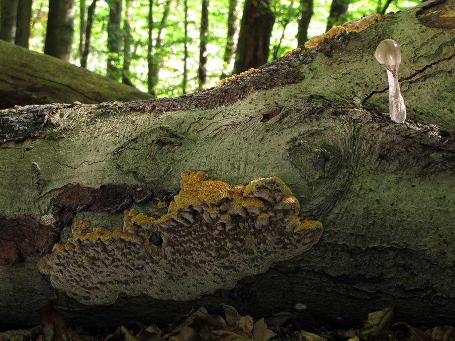 Hallo Zusammen, manchmal erscheint die Pilzwelt schon surreal. Da stößt man auf einen Buchenstamm der großflächig mit dem
