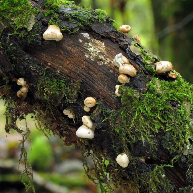 Es handelt sich um junge noch geschlossene Klebrige Schleierseitlinge Tectella patellaris.