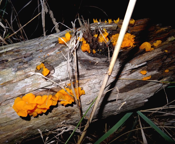 Es ist kalt geworden. Meinem letzten Pilz begegnete ich auf einem rindenlosen Treibholzbaumstamm auf 538m direkt am Ufer des Rheins in Graubünden. Bevor der erste Schnee fiel. Die goldgelbe Farbe musste ja auffallen. Und doch wurde dieser den Kartierungsstellen wenig gemeldet. Sofern gewünscht gebe ich gerne Informationen dazu. E. Gerhardt nennt den Riesen-Gallertträne bzw. Dacry(o)myces chrysospermus. Das (o) soll bei der aktuellen Benennung entfallen. - ? -