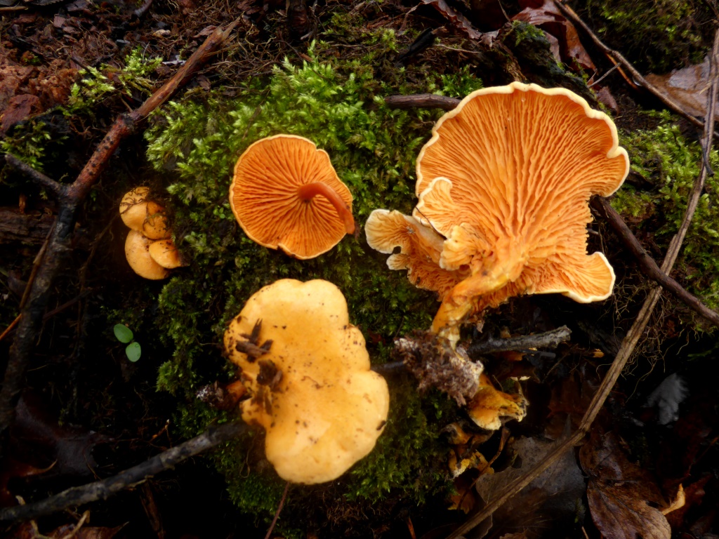 Wer denkt bei einem leuchtend orangefarbenen Pilz an einem Stumpf am Neckarufer in Stuttgart, gefunden im Januar (heute, 4.1.2016) -