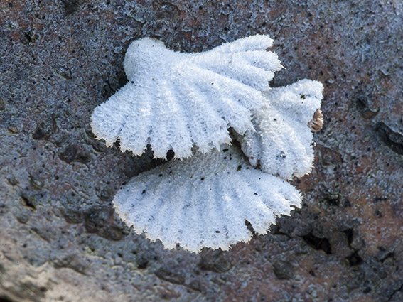 Hallo zusammen, diesen etwa 3cm breiten Pilz habe ich letztes Jahr im März auf Totholz in Südhessen fotografiert.