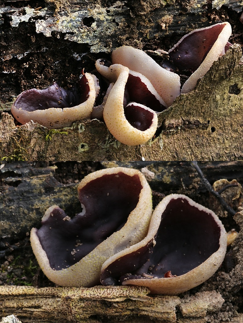 Die Fruchtschicht ist schön vilolett gefärbt, aussen sind sie cremfarben bis ockerlich.