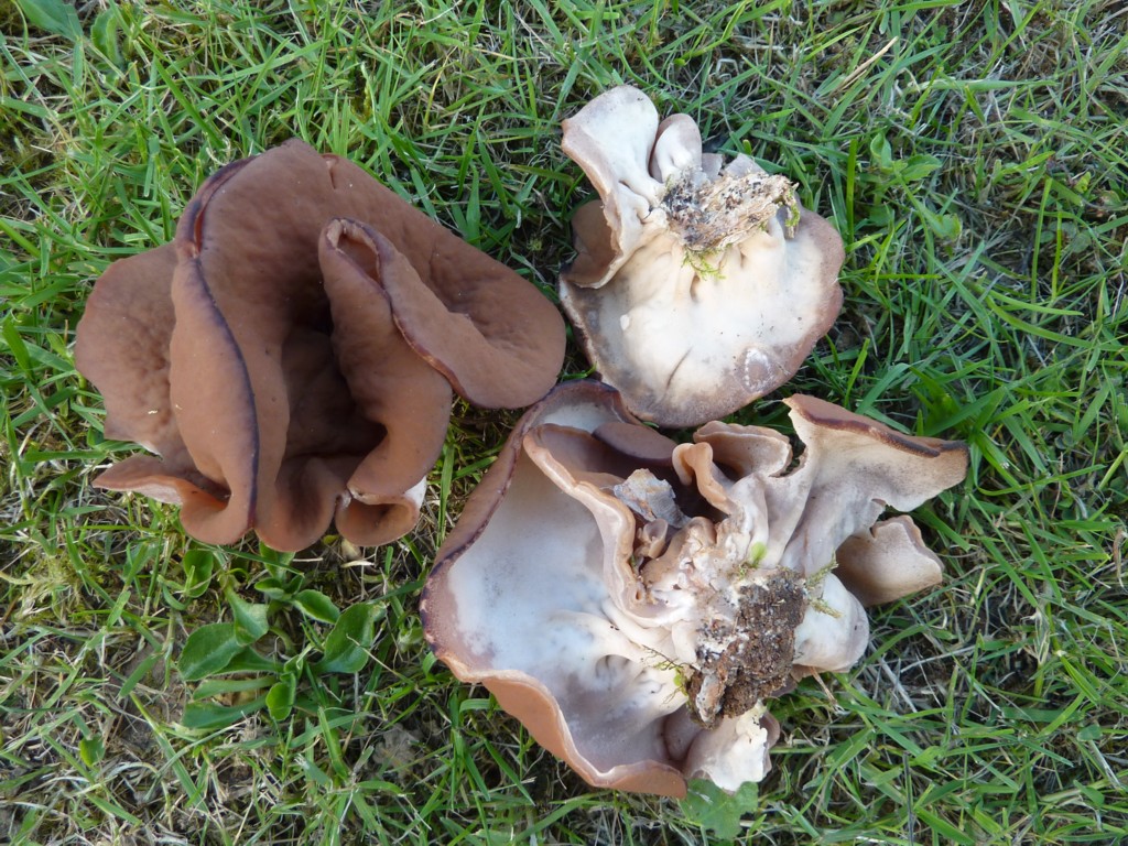 Hallo, Größter Scheibling, Discina perlata?, gefunden an einer meiner Mairitterlingsstellen im buschtgen Laubwald auf Kalk. Mehrere Fruchtkörper auf einem großen vermodernden Stumpf, dem Wald nach Laubholz, mehrere auf dem Boden nahebei.Schwacher, angenehmer Geruch, Fleisch sehr brüchig. Fruchtkörper bis 10cm breit.