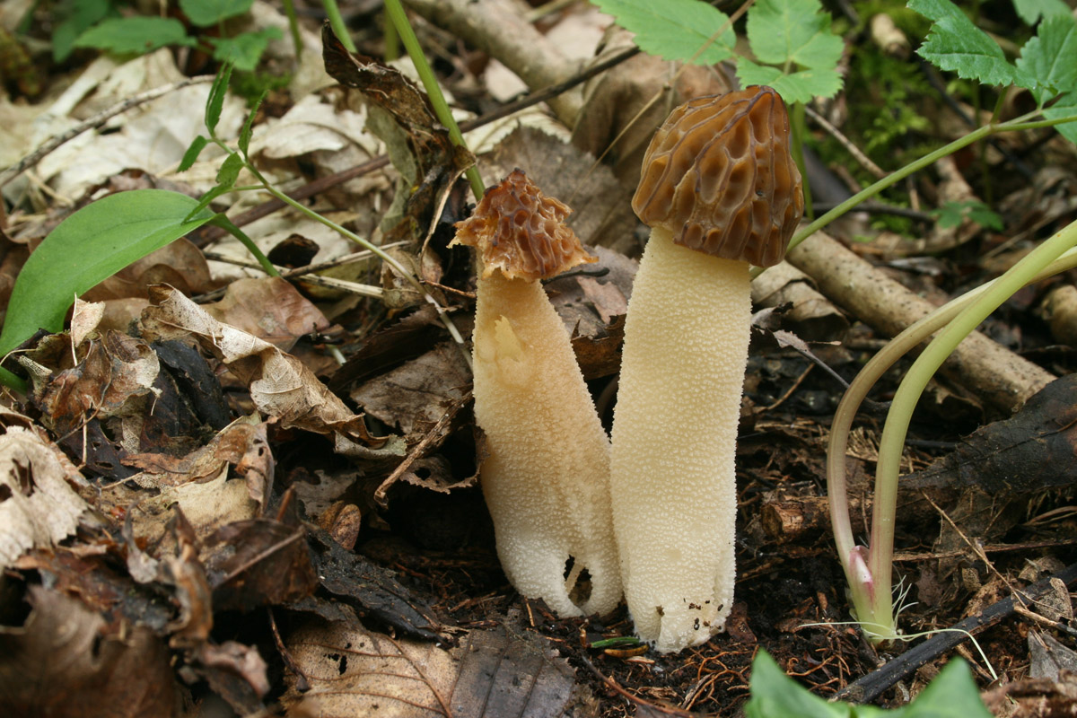 Hallo Manfred, ja, Du hast alle gesehen – die Kleine oben in der Mitte ist tatsächlich einen halbe Halbfreie ;-) die direkt + ungeschützt am Wegesrand wuchs. Hier noch ein Bild von 2 Geschwistern, die 1m weiter im hohen "Gjät" standen und deswegen die Köpfe recken mussten. Eigentlich hatte ich erwartet, dass zumindest das Riesending in der Mitte als M. crassipes bezeichnet würde, mit krasserem Fuß geht´s wohl kaum noch?! Dir noch eine gute Morchel-Saison!