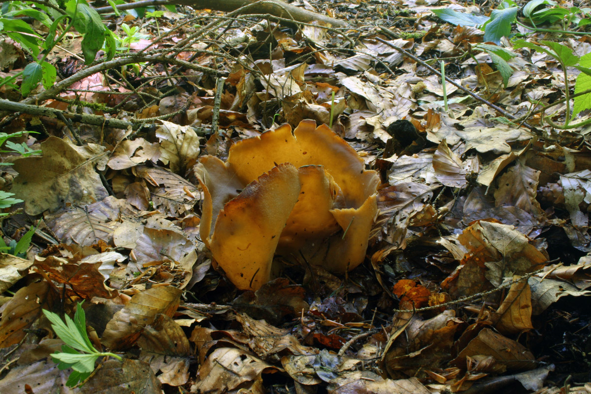 Hallo miteinander! Gleich noch einer... von der gleichen Tour am vergangenen Freitag, auch Buchen-Mischwald, am Wegesrand in der tiefen Laubstreu. Die Schüssel hatte einen Ø von 13 cm!