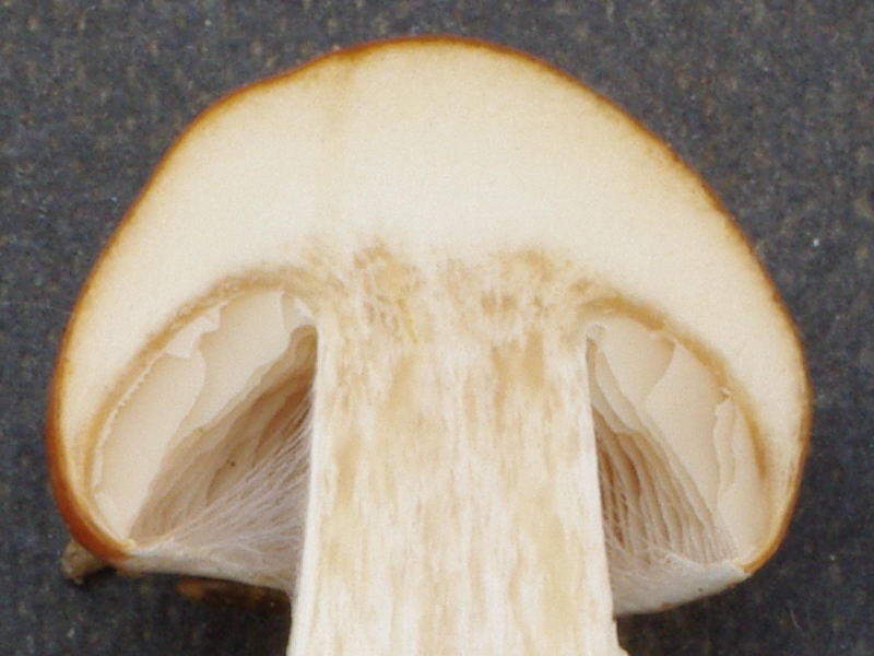 Servus Andreas, herzlichen Dank für die ausführliche Antwort! Ja, das ist ein verrückter Wald! In der Umgebung meines Wohnortes gibt es mehrere Waldgebieten, bei denen auf kalkhaltigen Grundlagen (Ausläufer des fränkisch-oberpfälzer Jura) offenbar aufgewehte Sandschichten - z. T. meterdick - liegen. Das führt dazu, dass man oben die typischen Pilze von Sand-Kiefernwäldern hat und weiter unten die kalkholden Arten. In dem Fundgebiet gibt es sogar ncoh ein Besonderheit: Da kommt eine Artenzusammensetzung vor, wie man sie sonst eher im montanen Bereich der Alpen findet mit Schweinsohr, Habichtspilz, Hydnellum peckii, Lactarius scrobilatus - und vielen Phlegmacien. Zu dem Schleimkopf hier: Es gab keinen Blauton, der Stiel war bei jungen Exemplaren knollig mit einem leicht gerandeten Ansatz, der sich im Alter verliert. Ich hänge mal noch ein paar Foto-Ausschnitte an. Gruß Helmut