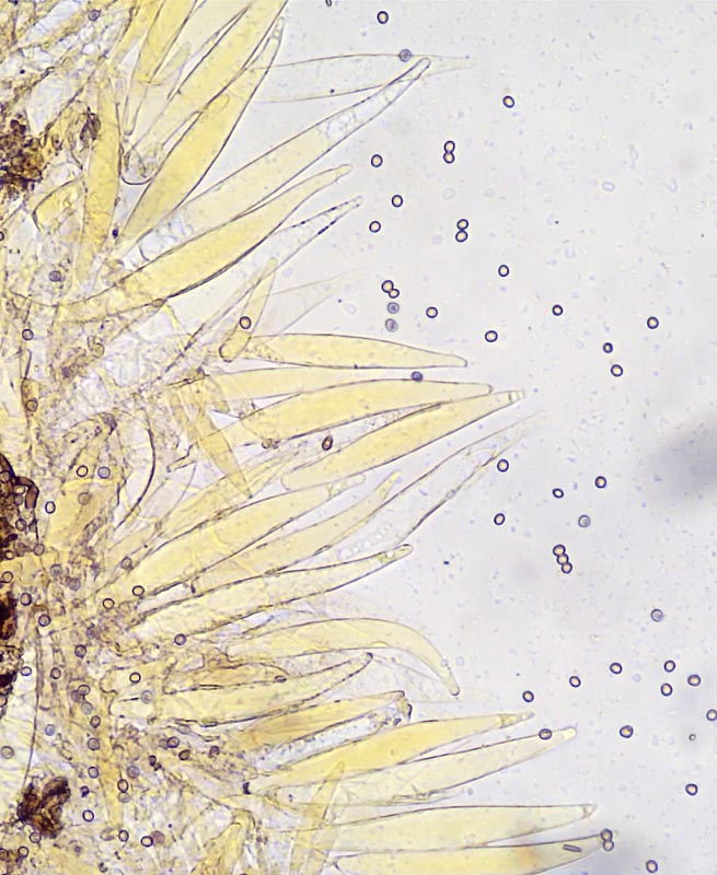 Hallo ihr Lieben, hier ein leichtes Mikrorätsel, ich hab gestern die Art erstmals selbst gefunden und war vom Mikrobild (HDS) so begeistert, dass ich es zeigen muss. Der Pilz wächst auf Holz. Und ich wink mal ganz nett nach Ehingen ;-) liebe Grüße Birgit