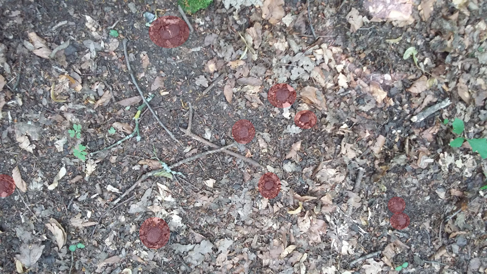 Hallo, und wer versucht hat zu zählen, wieviele Trüffeln isch auf dem unteren Bild versteckt hatten: Es sind 8 1/2 (die halbe ist am linken Bildrand eben nur halb drauf ....) Es wurde an dem Bild übrigens nichts gestellt, noch nicht mal das Laub weggemacht. Insgeamt waren ohne irgendwas am Standort zu verändern etwa 20 Fruchtkörper zu sehen. beste Grüße,