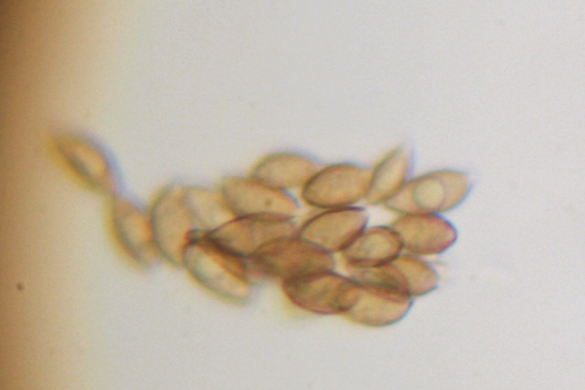 Ich hatte drei Frk. zum Aussporen auf einen Objektträger gelegt, es kam aber nur wenig raus. Das Wenige sah frei Auge weißlich aus... Was siehst Du für einen Widerspruch zwischen "braun" und "hyalin"? Auch braune Sporen können durchscheinend sein bzw. sind es in diesem Fall, wie Du auf dem Bildausschnitt (aus 320x, deswegen unscharf) erkennen kannst. Weitere Ideen zu diesen Pilzchen sind immer willkommen! Viele Grüße – Rika __________________________________________________________________ : Hallo Rika, : wie kommst Du auf "Sporen hyalin" - man sieht doch sehr deutlich