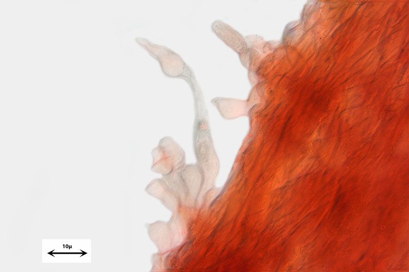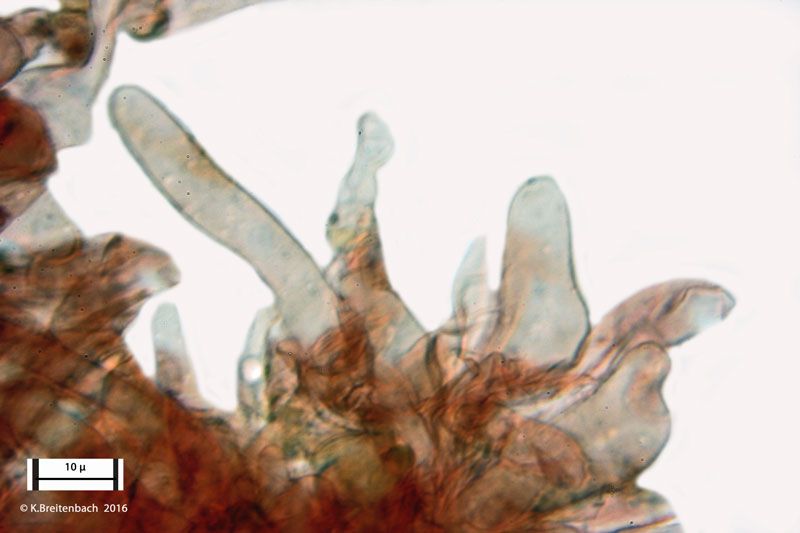 Stiel: Im oberen Teil des Stiels wurden solche Zystiden gefunden.