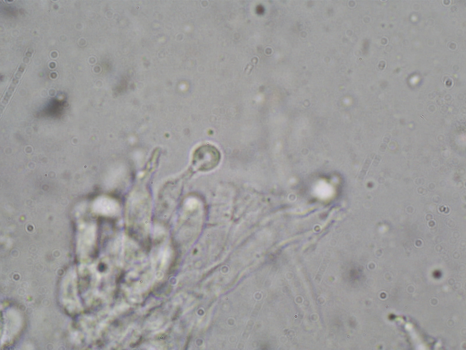 Hallo Rika, die nematodenfangenden "Apparate" finden sich auch auf den Lamellen, sind manchmal schwer zu finden und noch schwerer zu fotografieren, aber hier bitte schön, das kugelige ist die "Klebstoffhülle": herzliche Grüße Birgit