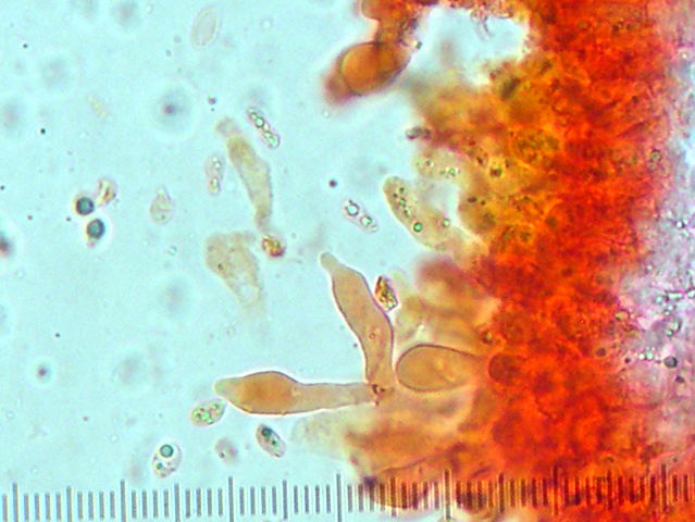 Servus und danke Euch allen, citrinomarginata und olivaceomarginata waren auch mit in der engeren Wahl. Einer der wesentlichen Gründe, warum ich zu capillaripes tendiert hatte, war die Sporengröße, vor allem die Breite, die nur bis 5 (5,5) µm reichte. Weihnachtsfrühlingsgrüße Helmut : Hallo zusammen, : und mein spontaner Gedanke war M. olivaceomarginata. Jetzt haben wir ja bald
